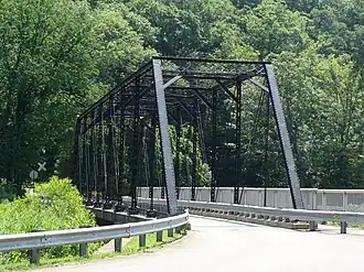 The Pennsylvania Department of Transportation (PennDOT) instituted a 10 short tons (9.1 t) weight limit for the bridge due to its deteriorating condition in 1979.[4] It was listed on the National Register of Historic Places on June 22, 1988.[2] The bridge was replaced in 1997 to meet safety requirements from PennDOT, as well as to allow tour buses heading to the nearby Drake Well Museum.
