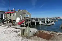 The town received its name "in 1902, the story goes, Thomas Mann a fisherman from Nova Scotia who had settled here, felt the village that had sprung up with its fishing shacks should be called Galilee, after the fishing village of biblical times. One day, an old timer sat on the docks repairing his nets when a stranger called out to him, "Where am I?" The answer was "Galilee". "And what is that?" the stranger asked pointing to the other side of the channel. The old timer thought for a minute, nodded his head and replied, "must be Jerusalem". And so the name of Galilee and Jerusalem have been used since to denote a most picturesque part of Rhode Island."[1]