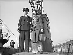 During the September Campaign he took part to Battle of Hel. On 14 September he arrived to Riga on the fishing boat Albators. After a short stay in the internment camp he escaped by plane to Sweden and from there via Norway to Aberdeen, where he arrived on 31 December 1939. From 15 January 1940 he served on the submarine ORP Wilk. In September 1941 he was transferred to the ORP Sokół.[2] On 18 August 1942 he was named commander of his vessel[3] and took part to the operations in the Mediterranean. His ship was attached to the 10th Submarine Flotilla based at Malta. On 12 September 1943 Sokół was the first allied vessel to enter the port of Brindisi receiving the surrender of the local authorities. On 7 October he sank a German troopship Eridania (7094 tons), the largest ship sunk by the Polish Navy. After returning to the United Kingdom in late March 1944 and a renovation Sokół patrolled the coast of Norway. On 12 December 1944 he became the Deputy head at the Navy specialists training Centre (Centrum Wyszkolenia Specjalistów Floty).