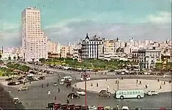 Casariego's tenure in El Alcazár was marked by permanent conflict with the owners and the board, headed by general Moscardo; it resulted from personal decisions[74] and conflicting managerial visions rather than from political discrepancies, both sides blaming each other for dropping sales and poor commercial performance.[75] In 1942 the conflict escalated to legal denunciations over alleged illegal trading in paper; official investigation strengthened Casariego's position.[76] As press envoy from a neutral country he travelled across the war-torn Europe and interviewed Hitler, Mussolini and Churchill.[77] In terms of political line El Alcazár demonstrated more than zealous loyalty to the new Spain, exalting Franco, Falange and the new Spain in general.[78] However, Casariego did not abandon his earlier ideological leaning: one of key threads which characterized El Alcazár’s profile of the period was "tradicionalismo de raíz carlista", combined with "hispanismo imperialista".[79] He also made sure that these members of El Siglo Futuro staff who survived the war found employment in El Alcazár.[80]