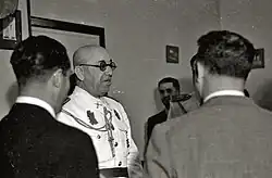 Casariego withdrew from Carlist political militancy. He did not engage in political structures, did not frequent Carlism-flavored events and did not contribute to Carlism-flavored press; historiographic works on Carlism during early and mid-Francoism do not mention him at all.[95] Due to his pro-Francoist zeal demonstrated during the El Alcazár spell many Traditionalists considered him traitor and dubbed him "El Diablo".[96] Some authors suggest that Casariego was left embittered, disappointed and perhaps bewildered,[97] others suggest he withdrew to some sort of political skepticism, "contracorriente de vientos dictatoriales y democráticos".[98] This, however, by no means amounted to opposition or publicly demonstrated discontent; also in the 1950s[99] and 1960s[100] he was a few times admitted by Franco at private audiences. He marginally practiced as a lawyer[101] and was also involved in fishing business in his native Asturias.[102]