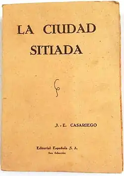 His contemporaries knew Casariego mostly as a novelist. Flor de hidalgos (1938),[144] La ciudad sitiada (1939)[145] and the best-known Con la vida hicieron fuego (1953) are set during the Civil War; the first two provide accounts of Carlists requetés fighting the Republicans, the last novel remained within the same genre, but assumed a somewhat melancholic tone. El mayorazgo navegante (1944)[146] was an adventure story in a historical setting. Far less popular was Casariego's poetry:[147] Romances modernos de toros, guerra y caza (1945), Romancillos de la fregata y de la diligencia (1951), Mares y veleros de España (1953), La historia triste de Fernando y Belisa (1960), Los cantos del bosque (1973) and Cantos de las soledades (1976).