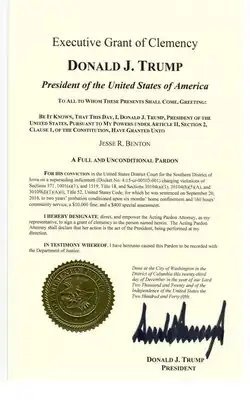 With the support of Rand Paul and FEC Commissioner Lee Goodman, Benton was given a full pardon by Donald Trump on December 23, 2020.[8]