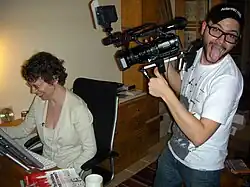 Jesse Zook Mann with Nina Paley shooting My First Time: The Tribeca Film Festival in 2008.
