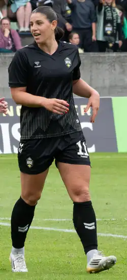 In July 2023, she signed with Spanish club Sporting de Huelva in the first tier Liga F.[22][23] On November 8, 2023, she scored the winning goal in a 1-0 victory over Real Unión de Tenerife to help the team advance to the Round of 16 in the 2023–24 Copa de la Reina de Fútbol.[24]