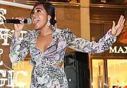 Mauboy is known for her good girl image[160] and is considered a role model to young girls and Indigenous communities in Australia.[161][162][163] Ed Gibbs of The Sydney Morning Herald described her as a "wholesome girl-next-door",[164] while Holly Richards of New Idea noted that she "is renowned for her squeaky-clean image and family values".[165] Genevieve Rosen of The Vine wrote that Mauboy's "flawless public image is no farce. Humble, genuinely engaging and passionate about public service, Mauboy, put simply, is really nice."[166] Anna Byrne of the Herald Sun observed, "It's clear this endearing unpretentiousness is not a fame facade. In every respect, the pint-sized pop star embodies one of the most elusive qualities of stardom: relatability. It's this genuineness that has seen her star ascend to where she actually is."[167] Fashion has influenced Mauboy's music career and image. Byrne noted that her "fashion choices have mirrored her rise in fame, with her style evolving from shy schoolgirl to confident diva, set to steal the sartorial spotlight".[167] Mauboy cites Jennifer Lopez as her style icon.[156] She has worn dresses designed by Dolce & Gabbana, J'Aton, Steven Khalil and Toni Matičevski,[167] and has appeared on the covers of fashion magazines in Australia, including Elle,[168] InStyle,[169] and Marie Claire.[170] She has also appeared on the cover of Who magazine's Sexiest People issue twice; first in 2012 and again in 2016.[171][172]