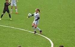 By September 2020, O'Rourke Çarmıklı was called up to the Turkey women's national football team to play at the UEFA Women's Euro 2021 qualifying Group A matches.[9] She wore the Turkish national jersey for the first time as she was naturalized through her marriage to a Turkish person. She played at the away match against Kosovo in Antalya on 23 October 2020.[10][11]