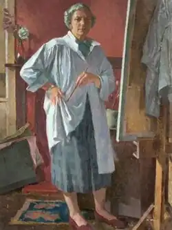 Dick was the youngest daughter in a family of eleven children. She was born in Largs where her father was the head gardener on the estate of Lord Kelvin.[1] She studied at the Glasgow School of Art from 1915 to 1919 and joined the teaching staff of the School in 1921.[2] Holding a variety of posts, but mainly teaching painting and drawing, she remained on the staff of the School until her retirement in 1959.[3][4] She was an active member of the Glasgow Society of Lady Artists and, in 1960, was elected an associate member of the Royal Scottish Academy.[2][5] She was also a regular exhibitor with the Royal Watercolour Society, with the Royal Society of Painter-Etchers and Engravers and at the Royal Glasgow Institute of the Fine Arts.[6] Dick died in 1976 after a fall at the home in Clarkston she shared with one of her sisters.[1] For many years a large portrait of her, Self Portrait in the Studio, hung in the Glasgow School of Art but was destroyed in 2014 when fire engulfed the building.[7] After her death, several fine watercolours by Dick were saved by a neighbour when about to be thrown away.[4] The McLean Museum and Art Gallery in Greenock holds examples of her work.[6]