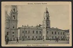 After the Second Partition in 1792, Minsk became part of the Russian Empire. In 1793, the school building was occupied by the governor's residence.[9] After 1798, when the Roman Catholic Diocese of Minsk was established, a three-story building was erected within the college premises, at the height of the cathedral apse, for the needs of the consistory.[10] Until 1820, the offices were housed in the college, then the city council, and from 1852, the treasury. The college tower became a fire observation tower.[8]