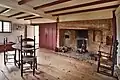Like the view from the house, the dwelling itself had a different appearance in the seventeenth century, although we can't be certain exactly what it was. It was an impressive house for its time, two stories in height on the south-facing front facade, with a long, sloping north roof sometimes called a “catslide,” which may be an original feature. Massive fireplaces were the dominant features of the rooms on each floor: the parlor on the west side, the hall, or great room, on the east, and the lean-to kitchen in the rear, under the low-hanging roof. Two chambers, or bedrooms, were on the second floor, with an attic above. Physical evidence indicates that the center-chimney dwelling originally featured twin front gables that allowed light into the second-floor rooms, and from that height on the hill the Coffins and their children could see for miles.