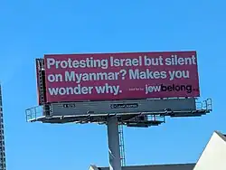 - ^ "Berkeley billboards raising awareness about antisemitism left defaced, nonprofit says". ABC7 San Francisco. 2023-01-21. Retrieved 2023-09-08.