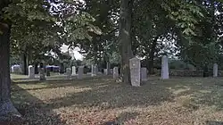 On the cemetery there are 31 very well preserved gravestones dating from the end of the 19th / beginning of the 20th century.[1] All gravestones face south with German inscriptions on the back. In the southern part of the cemetery there is a memorial stone with the inscription "In remembrance of the Jewish victims of fascism – a reminder to Everyone".