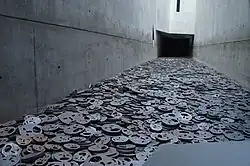 Israeli artist Menashe Kadishman created the installation Shalekhet – Fallen leaves, 10,000 faces punched out of steel and distributed on the ground of the Memory Void, the only empty or "voided" space of the Libeskind Building that can be entered. Kadishman dedicated his artwork not only to Jews killed during the Shoah, but to all victims of violence and war. Visitors are invited to walk on the faces and listen to the sounds created by the metal sheets, as they clang and rattle against one another.