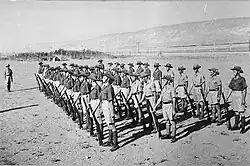 The Haganah used the force as a "Training Centre" and put as many of its members through the JSP as possible: 13,455 between its formation and the end of 1945.[1] The British authorities provided special uniforms, guns, light trucks and some machine guns and allowed the force to control sections of land around Jewish villages and Kibbutzim.[9] The JSP also provided paramilitary training to Haganah units.[10] The force thus expanded the assets of the Haganah and helped to provide a legal basis for much of their activities.[11][12][13]