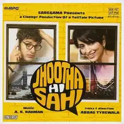 Jhootha Hi Sahi is the soundtrack to the 2010 Bollywood romantic comedy film of the same name, directed by Abbas Tyrewala starring John Abraham and Pakhi Tyrewala. The soundtrack, consisting of seven original tracks and two remix versions was composed by A. R. Rahman with lyrics penned by Abbas Tyrewala. The audio was officially released on 17 September by the Saregama label at the Sa Re Ga Ma Pa competition.[1][2] The album was very well received by the critics and was the chart topper for some weeks.[3]