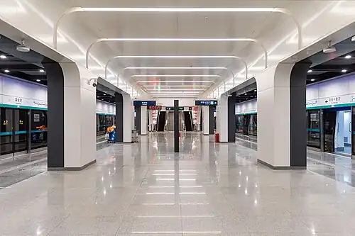 Jiahuihu station (Chinese: 嘉会湖站; pinyin: Jiāhuìhú Zhàn; lit. 'Jiahui Lake station') is a subway station on Line 17 of the Beijing Subway.[1] It is named after the planned Jiahui Lake Wetland Park.[2][3] The station opened on 31 December 2021, and is the southern terminus of the line.
