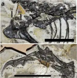 - ^ a b c Hartman, S.; Mortimer, M.; Wahl, W.R.; Lomax, D.R.; Lippincott, J.; Lovelace, D.M. (2019). "A new paravian dinosaur from the Late Jurassic of North America supports a late acquisition of avian flight". PeerJ. 7: e7247. doi:10.7717/peerj.7247. PMC 6626525. PMID 31333906.