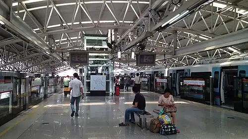 Jiaokou Station (Chinese: 滘口站; Cantonese Yale: Gaauháu Jaahm) is an elevated terminus on Line 5 of the Guangzhou Metro.[1] It is located at Fongcun Avenue West (芳村大道西) near the Jiaokou Coach Terminal (滘口客运站) in Fangcun, Liwan District, Guangzhou.[2][3][4] and opened on 28 December 2009.[5]