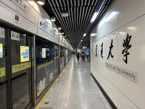 Jiao Tong University (simplified Chinese: 交通大学; traditional Chinese: 交通大學; pinyin: Jiāotōng Dàxué) is an interchange station between Line 10 and Line 11 of the Shanghai Metro. The station entered operation on 10 April 2010 with the operations of Line 10.[1] It became an interchange station with Line 11 on 31 August 2013.