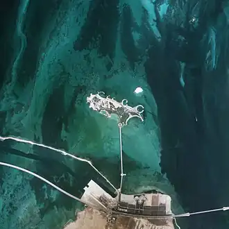 The main island is made of limestone cliffs. It is believed that blocks of rock cut from the island were used in the Barbar temple on Bahrain Island.[3] The small Mini Bahrain is an artificial island on the south shore made to look exactly like the big Bahrain island.[4]