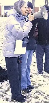 On August 1, Stein, Honkala and three others were arrested during a sit-in at a Philadelphia bank to protest housing foreclosures on behalf of several city residents struggling to keep their homes.[21] On October 16, Stein and Honkala were arrested after they tried to enter the site of the presidential debate at Hofstra University while protesting the exclusion of smaller political parties, such as the Green Party, from the debates.[22] Stein likened her arrest to the persecution of dissident Sergei Udaltsov in Russia.[23] On October 31, Stein was arrested in Texas for criminal trespass, after trying to deliver food and supplies to environmental activists of Tar Sands Blockade camped out in trees protesting the construction of the Keystone XL pipeline.[24][25]