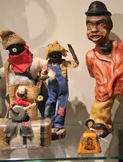 The largest portion of the museum's holdings is anti-black memorabilia, for example, mammy candles, Nellie fishing lures, picaninny ashtrays, sambo masks, and lawn jockeys. The museum also displays Jim Crow memorabilia—books, signs, tickets, brochures, and photographs—that promoted racial segregation. Many of the objects are disturbing because of historical cruelty or denigrating topics they refer to. Other objects related to resistance to injustice and to recognition of black leaders can be uplifting and transformative.[6] Publicity for the museum notes that many objects "contain explicit images of violence, nudity, offensive language, and other mature themes" and that visits by children under age 12 years are not recommended.[7]