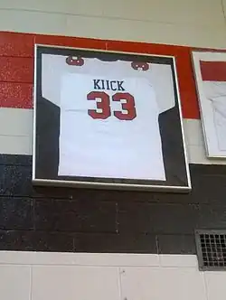 A retired jersey honoring Kiick hangs in the gym at Boonton High School.