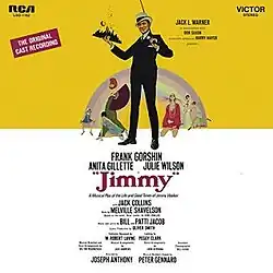 Jimmy is a musical with a score by Bill Jacob, lyrics by Patti Jacob, dance arrangements by John Berkman, and a book by Melville Shavelson and Morrie Ryskind. The musical describes the rise and fall of New York City Mayor Jimmy Walker, whose career was marred by corruption. It was a romanticized version of Walker's tenure as mayor, as presented in the 1957 film Beau James, starring Bob Hope.[1] The film came from a biography of Walker, also titled Beau James, written by Gene Fowler.