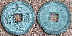 Although the Jin dynasty had started issuing paper Jiaochao (交鈔) in 1154, they didn't produce coins until the year 1158, prior to that coins from the preceding Liao and Song dynasties continued to circulate within Jurchen territory,[2] as well as a continuing large inflow of coins produced by the Song, this was because the territory of the Jin didn't have enough copper to meet the demand.[3][4] Jin era coins circulated alongside paper money and silver sycees, and were the main medium of exchange for the general population.