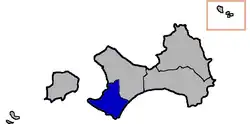 Jincheng Township (Chinese: 金城鎮) is an urban township on the southwestern corner of the island of Kinmen (Quemoy). It is the county seat of Kinmen County, Fuchien Province, Republic of China (Taiwan). Jincheng was the seat of the ROC's Fukien Province from 1949–1956 and 1996–2018. In March 2012, it was named one of the Top 10 Small Tourist Towns by the Tourism Bureau.[5]