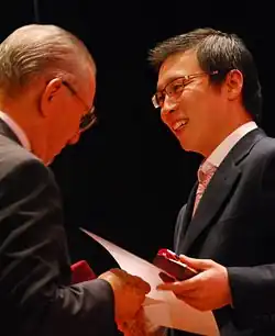 In March 2008, he was a winner of prestigious Artists International Audition in New York City. In October and November, respectively, Wang won First Prize at the Panama International Piano Competition[6] and Second Prize at the Poulenc International Piano Competition.[7] In March, 2009, he won First Prize the Kankakee Piano Competition and subsequently performed Ravel's Piano Concerto with the Kankakee Valley Symphony Orchestra near Chicago.[8][9] In April 2009, Wang won Third Prize [10][11] at the 51st annual Concurso Internacional Premio Jaén, an internationally respected and longest-running piano competition in Spain. In July, 2009, Wang was 3rd Prize winner in the 15th Ricard Viñes Piano Competition.[12] As of 2012, it is evident from the winner lists that Wang is the only Chinese National to have accumulated top prizes at all of these competitions.