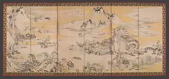 Jinshan Island and West Lake (金山西湖図屏風) is a painting on six Byobu folding screens by Japanese artist Kanō Sanraku, the master of the Kano painting school. The artwork was created with ink, paint, gold and paper. It is part of the collection of the Metropolitan Museum of Art in New York City.[1] Both are created with gold powder.