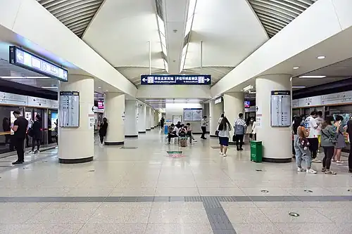 Next to the subway station is the shopping mall Hopson One,[3] you can directly go from the subway station to two floors of the shopping mall.