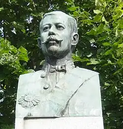The bust of João Franco, located in a square of the same name in Guimarães, honors the former Minister of the Kingdom, reflecting his historical significance and political influence in early 20th-century Portugal.