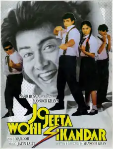 Jo Jeeta Wohi Sikandar (transl. The one who wins is the king) also abbreviated as JJWS is a 1992 Indian Hindi-language coming-of-age sports action film, directed and co-written by Mansoor Khan,[2] and produced and co-written by Nasir Hussain. It stars Aamir Khan,[3] Ayesha Jhulka, Deepak Tijori, Mamik Singh, Pooja Bedi and Kulbhushan Kharbanda. The music was by Jatin–Lalit.