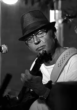 Joan Eloi Vila studied at the Conservatori Superior de Musica del Liceu, at the Center d'Estudis Musicals, at the Aula de Música Moderna y Jazz, and at 10 Master-Classes with Joe Pass in France. He was a member of the children's group "Els Xipis" and collaborated with the Barcelona orchestra "La Salseta del Poble Sec" and has had a long career accompanying established artists on their tours: Jimmy Page, Joan Baptista Humet (from 1980 to 1984), Joaquín Sabina and Joan Isaac.[2]