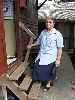 Joan Kyrle Evans, PBVM, is a retired Australian religious sister born in 1931 who was based in the Klong Toei slums in Bangkok, Thailand. She is a member of the Western Australian Congregation of Presentation Sisters. Evans is a charity activist, who helps the needy youth and families in the slums of the Thai capital. Each fortnight, Evans' project supports around 100 babies with deliveries of powdered milk.[1]
