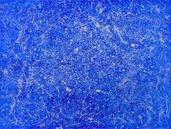 Beginning in the early 2000s, Moment turned to what Peter Frank called "flow painting"[39]—pouring, dragging and puddling thin paint to produce fresco-like grounds suggestive of cosmic gases, tidal eddies, flood plains, lava flows and deserts seen from above.[40][2][10] In the abstract "Universe" series (2002– ), Moment overlaid these grounds with imprinted circular forms of different sizes that were rhythmically stamped, scraped, blotted and allowed to run, creating active, tactile surfaces.[13][2][3][40] Maria Porges wrote that this later work moves toward a "transcendence of the specificity of the human body," often suggesting the deep time of outer space and inconceivable distances (e.g., Endlessness, 2009).[10] The paintings have taken several directions, sometimes in tandem: configurations of interlocking, cascading or clustered circles suggesting cells, bubbles and chemical diagrams (e.g., Looking Through the Yellow Sea of Blue Moons, 2004); forms akin to islands (Archipelago, 2005) or those seen in Native American dreamcatchers; and evocations of the skies, with orbs and spattered circles that call to mind star constellations, planets or galaxies (Star Map II, 2005).[30][9][41][42]