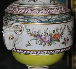 De Mol began with experiments in his garden shed behind the parsonage, opposite the church in Oud-Loosdrecht. In 1774, he started producing porcelain as a way of creating employments for the local population in the impoverished peat district. A part of the production process, however, was sited in Bilthoven.[1] On a country estate, property of the youngest brother of Belle van Zuylen, stood a "pletmolen met stamperij" (mill with grinding facilities), where feldspar, but possibly also cheap Chinese porcelain was added and ground up. The raw materials were mixed up with suitable white clay (from England?) and quartz in a cellar in Utrecht, and shipped to Oud-Loosdrecht.