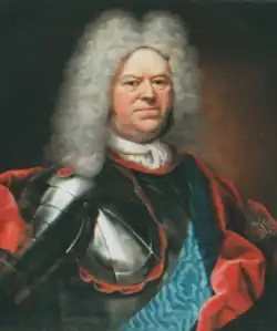 During Battle of Ramillies, in 1706, Scholten led the first attack on the village of Ramillies. At the head of 12 Dutch, British, German, Swiss and Danish battalions, he managed to capture the village without much difficulty. A counterattack by d'Artagnan was temporarily successful, but with the arrival of fresh Allied troops, the village again fell into Allied hands.[25] At the capture of Oudenaarde, later that year, it was the arrival of Scholten and his troops that made the governor of that city decide to surrender.[26] Under the command of Ernst Wilhelm von Salisch, Scholten took part in the Siege of Menin. Together with the Earl of Orkney, he led the allied infantry during the siege.[27] His regiment also took part in the Siege of Ostend.[28]