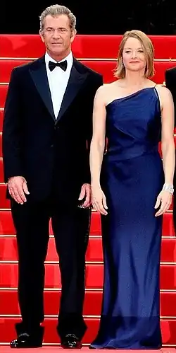 In the 2010s, Foster focused on directing and took fewer acting roles.[139] In February 2011, she hosted the 36th César Awards in France, and the next month released her third feature film direction, The Beaver (2011), about a depressed man who develops an alternative personality based on a beaver hand puppet.[140] It starred Maverick co-star Mel Gibson and featured herself, Anton Yelchin and Jennifer Lawrence in supporting roles as his family.[141] Foster called its production "probably the biggest struggle of my professional career", partly due to the film's heavy subject matter but also due to the controversy that Gibson generated when he was accused of domestic violence and making antisemitic, racist, and sexist statements.[139][142] The film received mixed reviews,[143][144] and failed the box office, largely due to this controversy.[145][146][147] In 2011, Foster also appeared as part of an ensemble cast with John C. Reilly, Kate Winslet and Christoph Waltz in Roman Polanski's comedy Carnage, in which the attempts of middle-class parents to settle an incident between their sons descends into chaos. It premiered to mainly positive reviews and earned Foster a Golden Globe nomination as Best Actress.[148]