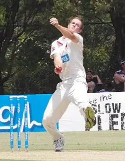 In October 2011 he made both his List A[5] and first-class cricket debuts for the Redbacks.[6] His first big haul came against Western Australia when he took figures of 7/96, including the last five wickets of the innings to bowl out Western Australia and keep the Redbacks in the game.[7] He took the second-most wickets by a South Australian for the Sheffield Shield season[2] with 23 wickets at an average of 26.26.[3] He was signed to the Perth Scorchers in the Big Bash League Twenty20 competition, along with Ryan Duffield in December 2011 to replace the injured Mitchell Johnson and Mark Cameron. However, he didn't make his Twenty20 debut until October 2012, when he played in the Scorchers opening match against the Titans in the 2012 Champions League Twenty20.[8]
