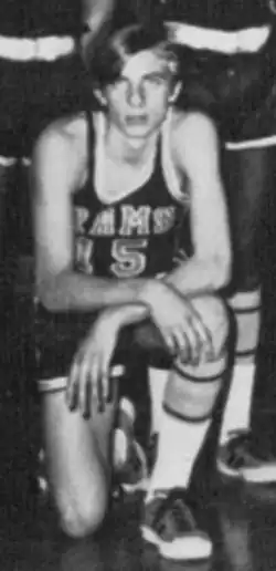 Montana received his primary education at Waverly Elementary and his secondary education at Finleyville Junior High (now known as Finleyville Middle School) and Ringgold High School.[19] While at Ringgold, Montana played football, baseball, and basketball.[16] Montana showed potential as a basketball player and helped Ringgold win the 1973 WPIAL Class AAA boys' basketball championship while being named an all-state player.[20] He was so good that during his senior year, North Carolina State offered Montana a basketball scholarship.[8] Although Montana turned down the scholarship, he seriously considered NCSU because of a promise that he could play both basketball and football for the university.