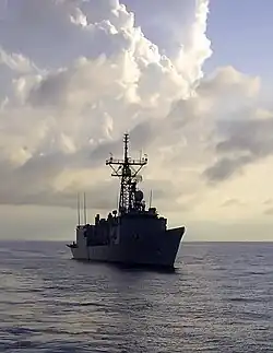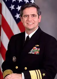 Graduating second in his class at the United States Naval Academy, Sestak served in the United States Navy for over 31 years and rose to the rank of three-star admiral.[6] He served as the Director for Defense Policy on the National Security Council staff under President Bill Clinton and held a series of operational commands, including commanding the USS George Washington carrier strike group during combat operations in the Persian Gulf and Indian Ocean in 2002.[7]