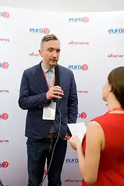 Joe Wade is a British filmmaker, TV writer and producer.[1] He is CEO and co-founder of Don't Panic London, a media agency known for the Don't Panic pack and posters created from 2010 by artists such as Banksy and Shepard Fairey. Wade has been making viral YouTube to highlight environmental and social issues. In 2012 he co-created a BAFTA winning BBC Three show, alongside Heydon Prowse, titled The Revolution Will Be Televised. The show was nominated for second TV BAFTA in 2014 and lost to James Corden. In The Revolution stars Jolyon Rubinstein and Prowse hold politicians and businessmen to account for wrongdoings and corruption, in a satirical manner.