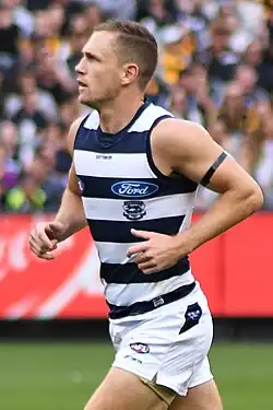 Joel Anthony Selwood (born 26 May 1988) is a former Australian rules footballer who played for the Geelong Football Club in the Australian Football League (AFL). He is a four-time premiership player (including one time as captain), a six-time All-Australian, and a three-time captain of the All-Australian team. Selwood captained Geelong between 2012 and 2022, has won the Carji Greeves Medal three times as their best and fairest player, and holds the record for longest-serving captain in the AFL.