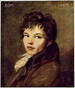 Later, he visited Paris. In 1803, he and a fellow student, Franz Gareis went from Paris to Rome, via Marseille. Gareis died of typhus not long after they arrived.[1] Rößler remained there until 1807, living in an artists' quarter near the Spanish Steps. During his stay, he painted a portrait of the architect, Karl Friedrich Schinkel, and became acquainted with the sculptor, Bertel Thorvaldsen.