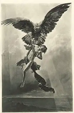 He then studied in Paris, with Mihály Munkácsy, and created a monumental painting of "Ganymede". Between 1884 and 1886, he was in Munich and created the colossal painting, "Christ Drives the Money Changers Out of the Temple."[4] He was, however, primarily busy with illustrations, such as for the works of Goethe and Paul Heyse, Gulliver's Travels by Jonathan Swift, The Last Days of Pompeii by Edward Bulwer-Lytton, and various youth literature.
