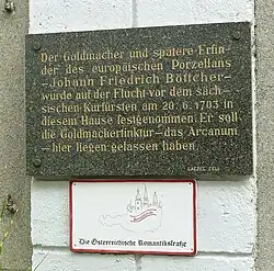 The story of Johann Friedrich Böttger is the theme of Gustav Meyrink's Goldmachergeschichten. His name is changed to Johann Friedrich Bötticher.