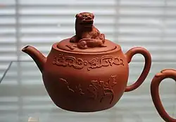 In the late 17th century Chinese Yixing clay teapots, made of special Yixing clay, were imported to Europe along with China tea. They had long been popular in China, as the unglazed stoneware is said to improve the taste of tea. The unfamiliar material inspired attempts to imitate it, and one Delftware manufacturer announced in 1678 that he was making "red teapots", of which no examples are known to survive. Some red stoneware by rival Dutch potters from about 1700 survives, closely copying Yixing pots in style (the Elers brothers made similar wares in England in the 1690s). Böttger was in contact with some of these and developed a rival "Böttger ware", a dark red stoneware first sold in 1710, and manufactured and imitated by others, all up to about 1740.[5] It is a very significant stage in the development of porcelain in Europe.[6][7][8]